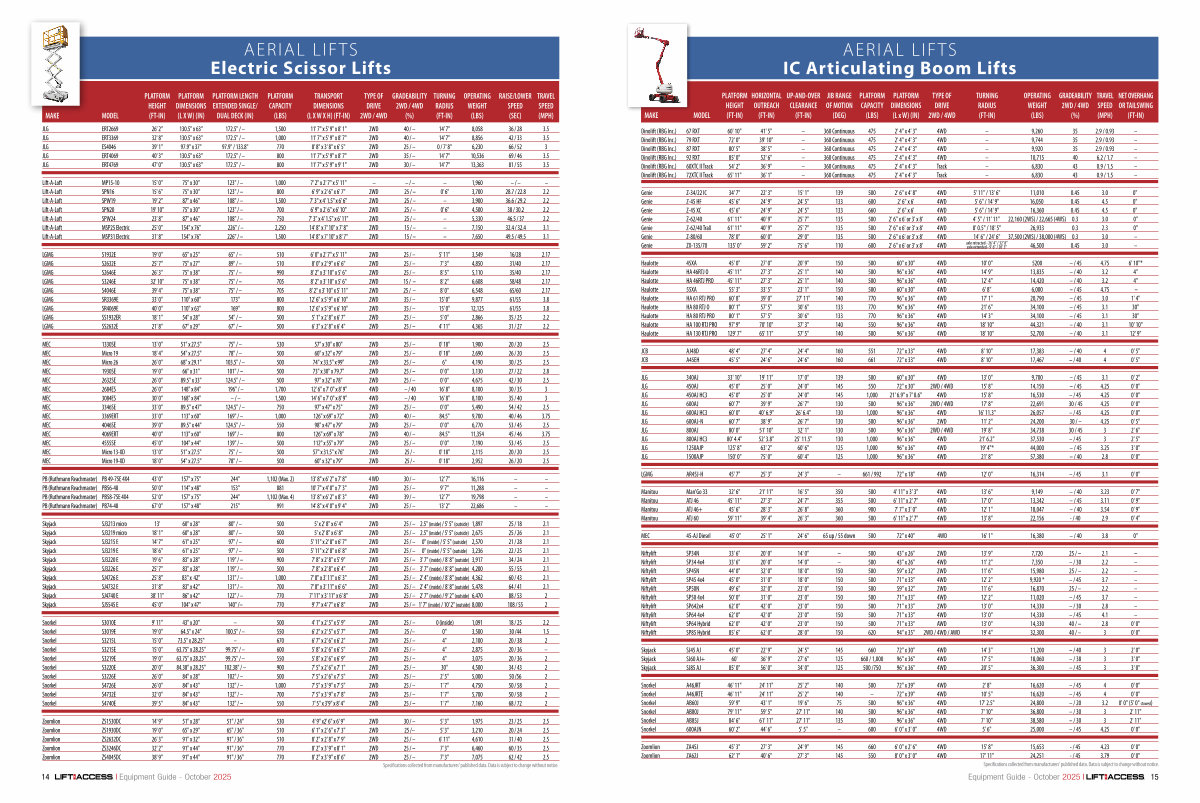 Specifications collected from manufacturers ' published data. Data is subject to change without notice. | ||||||||||||