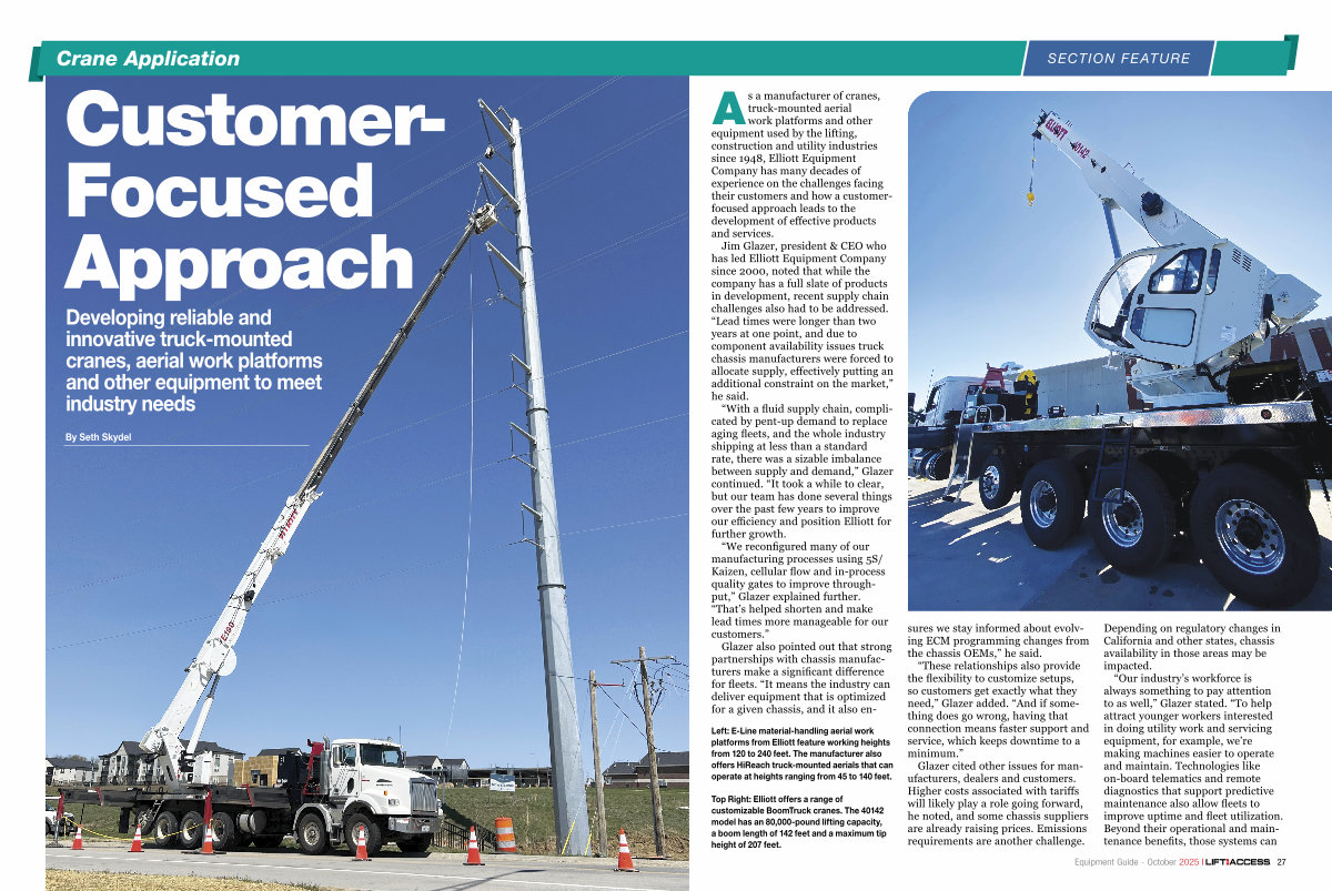 As a manufacturer of cranes, truck-mounted aerial work platforms and other equipment used by the lifting, construction and utility industries since 1948, Elliott Equipment Company has many decades of experience on the challenges facing their customers and how a customerfocused approach leads to the development of effective products and services.