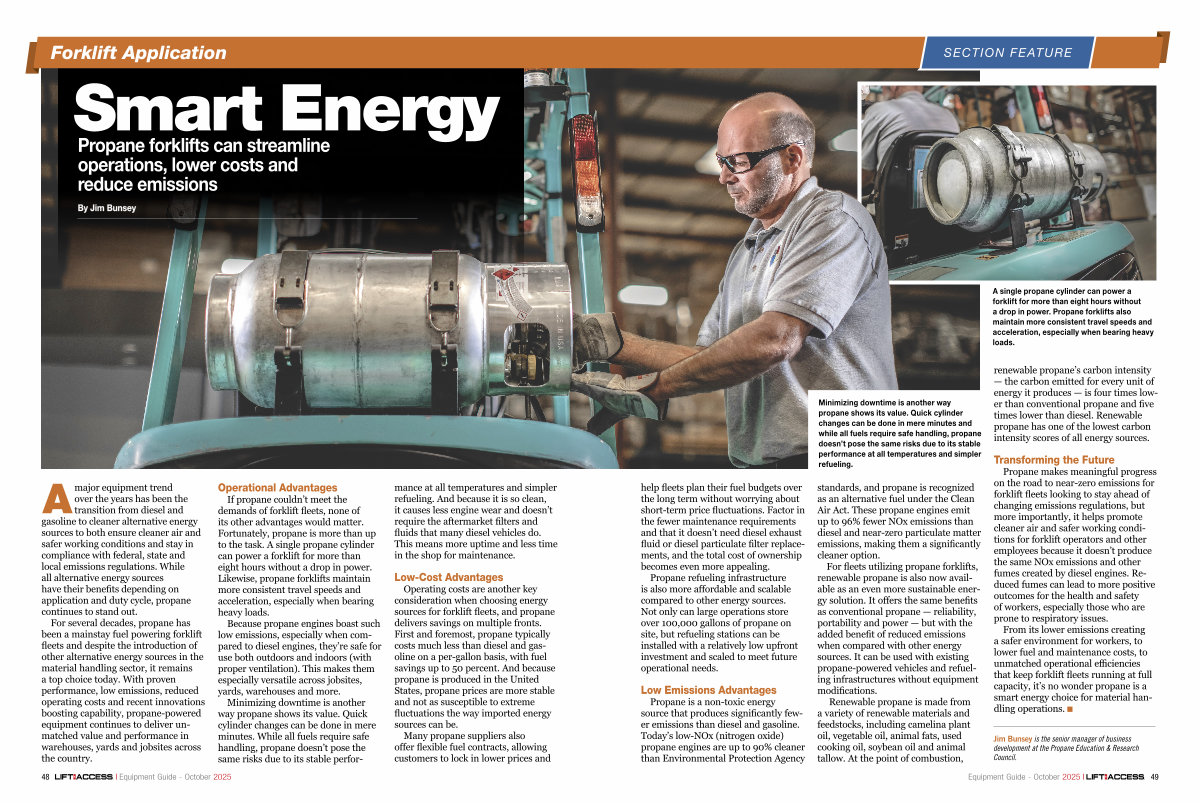 For several decades, propane has been a mainstay fuel powering forklift fleets and despite the introduction of other alternative energy sources in the material handling sector, it remains a top choice today. With proven performance, low emissions, reduced operating costs and recent innovations boosting capability, propane-powered equipment continues to deliver unmatched value and performance in warehouses, yards and jobsites across the country.