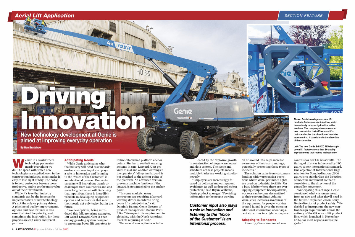 “ Anticipating this change, Genie considered what customers need from us now and what they’ ll need in the future,” explained Jason Berry, Genie director of product safety.“ We decided to incorporate the new control design requirements across the entirety of the GS scissor lift product line, which launched in November 2024, for most regions across the globe.”