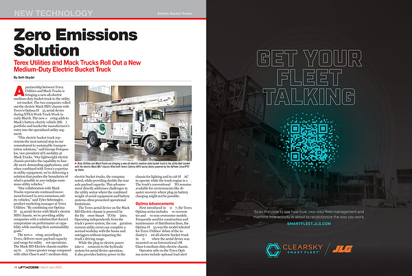 “ This electric bucket truck represents the next natural step in our commitment to sustainable transportation solutions,” said George Fotopoulos, vice president of E-mobility at Mack Trucks.“ Our lightweight electric chassis provides the capability to handle more demanding applications, and when combined with Terex’ s expertise in utility equipment, we’ re delivering a solution that pushes the boundaries of what’ s possible in zero tailpipe emissions utility vehicles.”