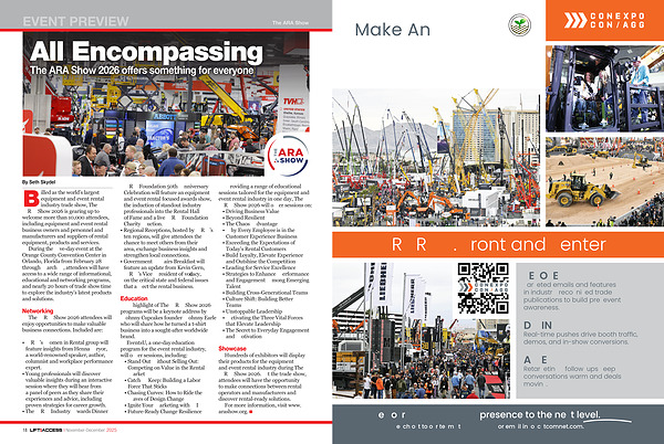 Billed as the world’ s largest equipment and event rental industry trade show, The ARA Show 2026 is gearing up to welcome more than 10,000 attendees, including equipment and event rental business owners and personnel and manufacturers and suppliers of rental equipment, products and services.