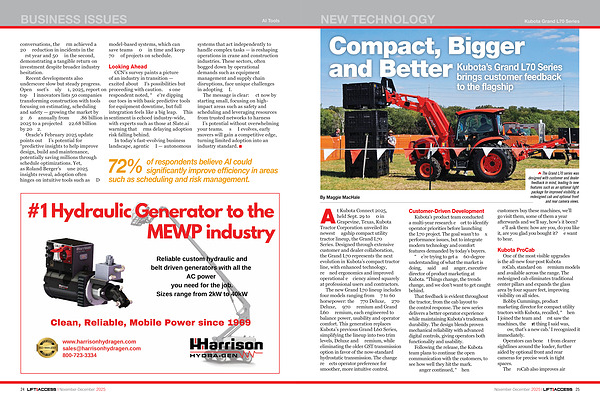 The message is clear: Act now by starting small, focusing on highimpact areas such as safety and scheduling and leveraging resources from trusted networks to harness AI’ s potential without overwhelming your teams. As AI evolves, early movers will gain a competitive edge, turning limited adoption into an industry standard.