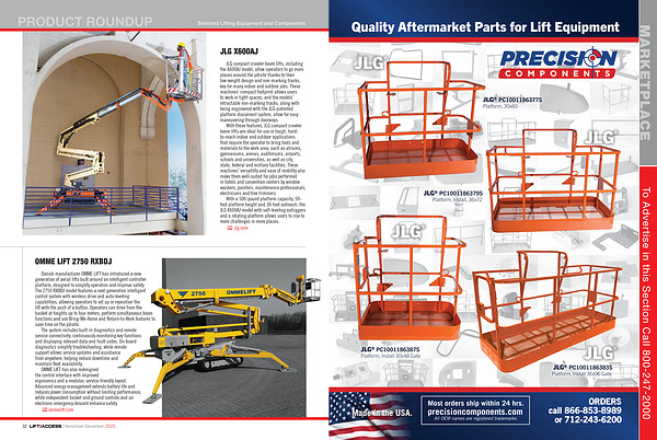 Danish manufacturer OMME LIFT has introduced a new generation of aerial lifts built around an intelligent controller platform, designed to simplify operation and improve safety. The 2750 RXBDJ model features a next-generation intelligent control system with wireless drive and auto-leveling capabilities, allowing operators to set up or reposition the lift with the push of a button. Operators can drive from the basket at heights up to four meters, perform simultaneous boom functions and use Bring-Me-Home and Return-to-Work features to save time on the jobsite.