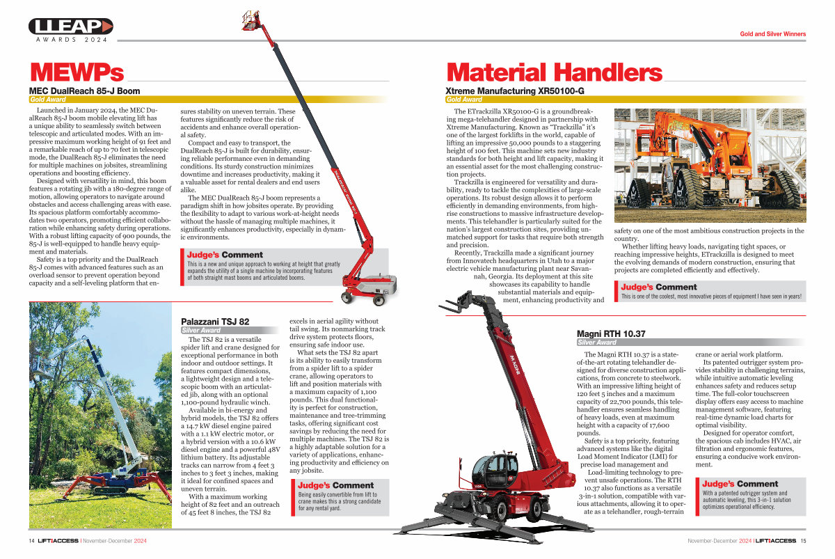 Launched in January 2024, the MEC DualReach 85-J boom mobile elevating lift has a unique ability to seamlessly switch between telescopic and articulated modes. With an impressive maximum working height of 91 feet and a remarkable reach of up to 70 feet in telescopic mode, the DualReach 85-J eliminates the need for multiple machines on jobsites, streamlining operations and boosting efficiency.