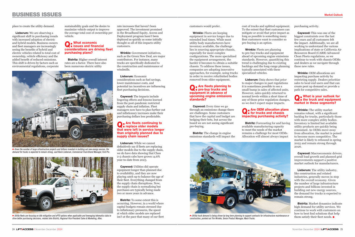 Caywood: Utilities did operate equipment longer than planned due to availability, and they are now playing catch up to balance the age of their fleet. Everything changed from the supply chain disruptions. Now, the supply chain is normalizing but purchases are typically being made two or more years in advance.