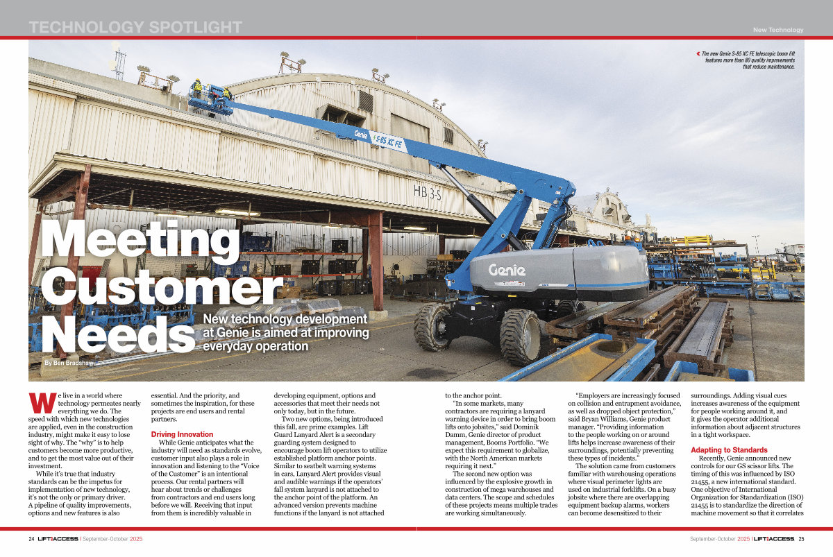 “ In some markets, many contractors are requiring a lanyard warning device in order to bring boom lifts onto jobsites,” said Dominik Damm, Genie director of product management, Booms Portfolio.“ We expect this requirement to globalize, with the North American markets requiring it next.”