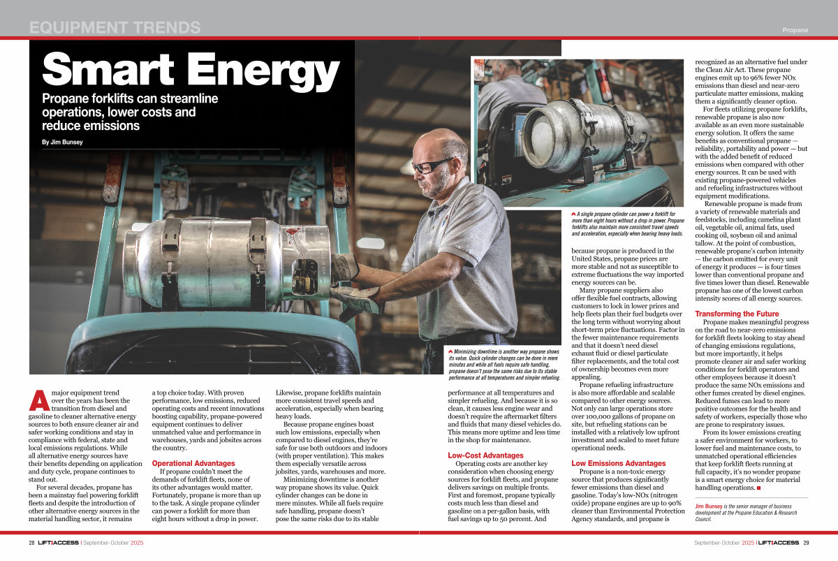 For several decades, propane has been a mainstay fuel powering forklift fleets and despite the introduction of other alternative energy sources in the material handling sector, it remains a top choice today. With proven performance, low emissions, reduced operating costs and recent innovations boosting capability, propane-powered equipment continues to deliver unmatched value and performance in warehouses, yards and jobsites across the country.